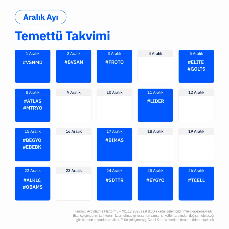Aralık ayında hangi şirketler ne zaman temettü dağıtacak?