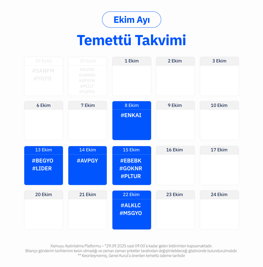 Ekim ayında hangi şirketler ne zaman temettü dağıtacak?