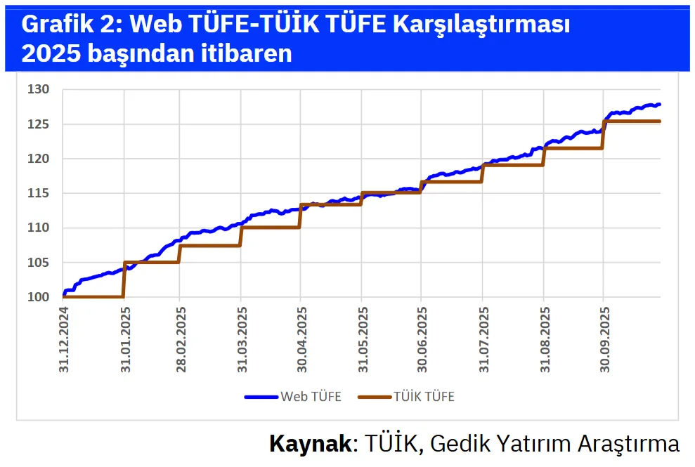 Web TÜFE tamamen web üzerinden fiyat derleyerek aylık yayınlanan resmi enflasyona alternatif, günlük periyotta yayınlanan yeni bir fiyat endeksidir. TÜİK sepetindeki maddeler ve madde ağırlıkları üzerinden oluşturulmuş sepete dayanmaktadır.