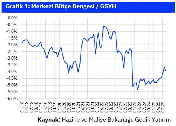 OVP ile 2025 yıl sonu bütçe açığı projeksiyonu da 1,9 trilyon TL’den (GSYH’nin %3,1’i) 2,2 trilyon TL’ye (GSYH’nin %3,6’sı) revize edilmişti, ki bu bizim öngörülerimizle tamamen uyumlu bir seviyeye işaret ediyor. OVP’de 2026 yılına ilişkin bütçe açığı/GSYH tahmin de %2,8’den %3,5’e yükseltildi. Yukarı yönlü revizyonlara karşın, bu sonuçlar 2023 ve 2024’teki %5,1 ve %4,7’lik gerçekleşmelere göre önemli bir iyileşmeye işaret ediyor. 2026 için öngörülen %28’lik vergi artışının %19,7’lik deflatör tahmininin oldukça üzerinde olması, ek vergi artışları yapılması ve/veya enflasyon muhasebesinden vazgeçilmesi gibi olasılıkları da akla getiriyor. Bu arada, tahakkuk bazlı ve nakit bazlı bütçe rakamları arasındaki deprem ödeneklerinin gecikmeli kullanılmasından kaynaklanan ayrışmanın önümüzdeki aylarda da devam etmesi beklenebilir.