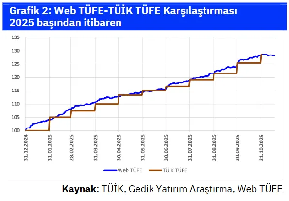 Web TÜFE, tamamen web üzerinden fiyat derleyerek oluşturulan ve aylık yayınlanan resmi enflasyona alternatif, günlük periyotta yayınlanan yeni bir fiyat endeksidir. TÜİK sepetindeki maddeler ve madde ağırlıkları üzerinden oluşturulmuş sepete dayanmaktadır.